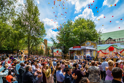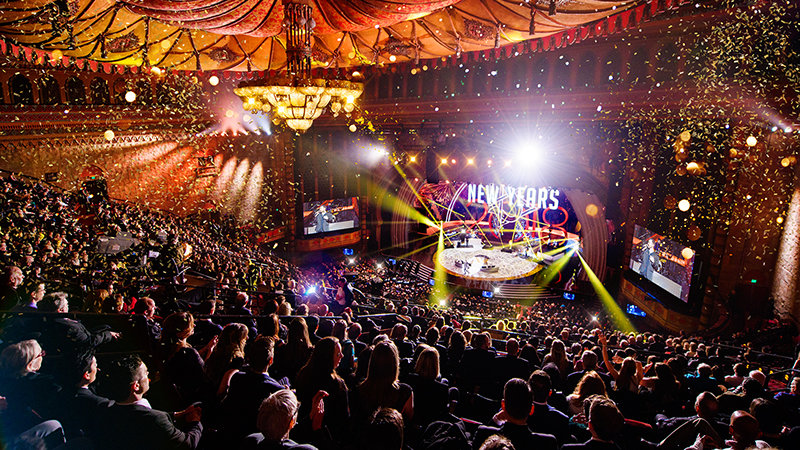 In migliaia salutano gioiosamente il Nuovo Anno e riflettono su una sfrenata serie di conseguimenti tesi alla creazione di un mondo migliore.
