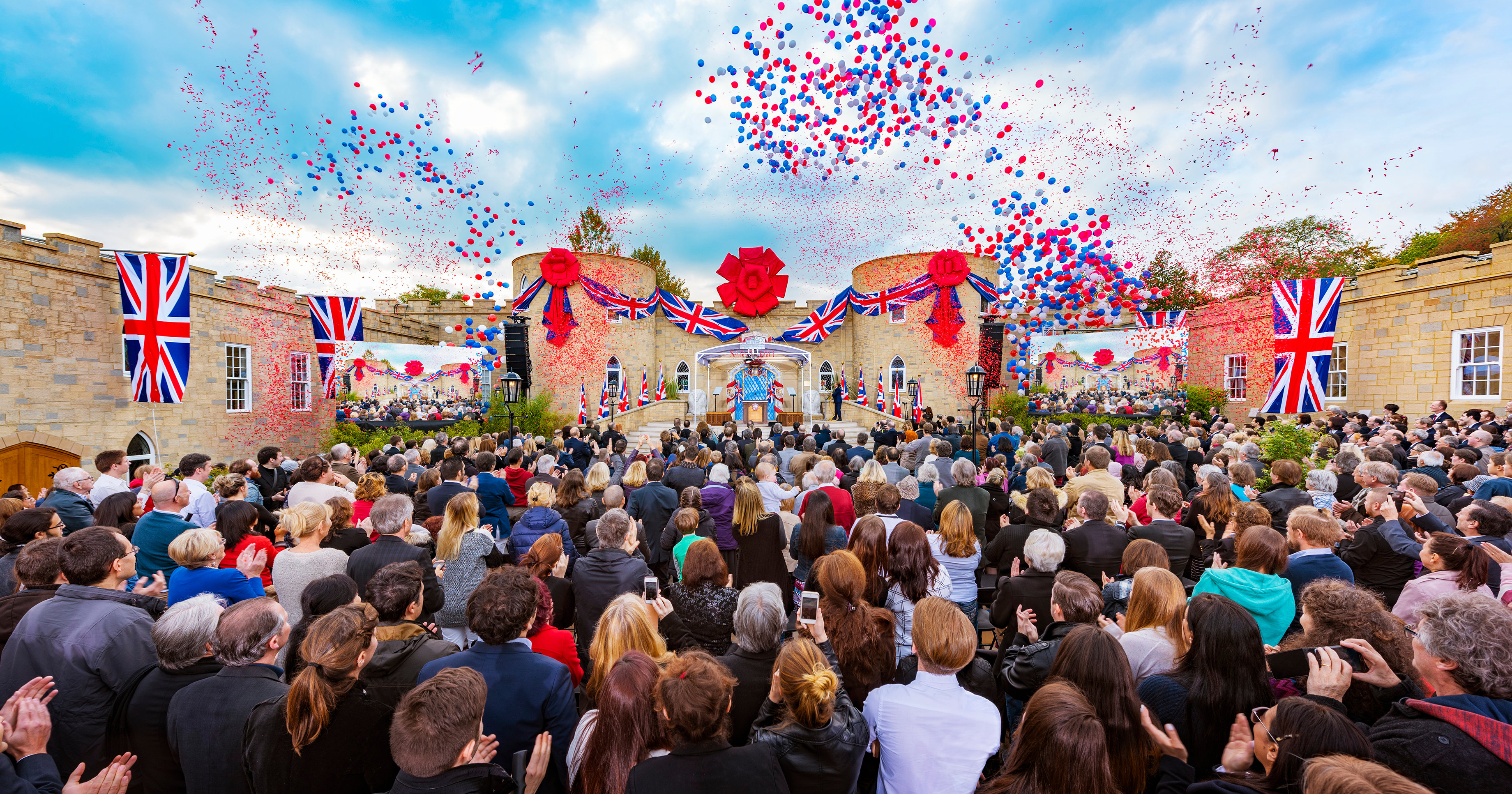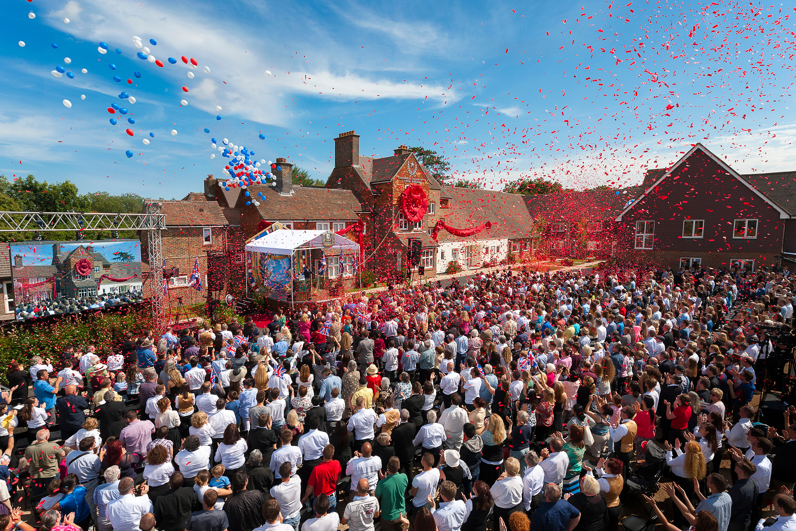 La nuova leggendaria tenuta restaurata ed espansa di Saint Hill nel West Sussex, in Inghilterra, viene presentata ad un pubblico entusiasta di circa 2.000 partecipanti.