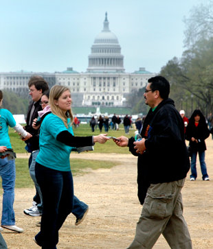I volontari montano stand informativi in luoghi della città ad alto traffico, contattando centinaia di migliaia di passanti tramite la distribuzione di opuscoli, proiezioni di annunci, conferenze informali, raccolta firme per una promessa di libertà dalla droga ed esibizioni di musicisti, acrobati e altri artisti.