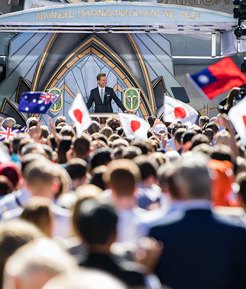 “Oggi stiamo segnando un altro monumentale passo avanti con una singolare cerimonia di inaugurazione”, ha detto David Miscavige, Presidente del Consiglio di Amministrazione del Religious Technology Center e leader ecclesiastico della religione di Scientology. “Infatti, in quale altro posto si può inaugurare una nuova Organizzazione Avanzata di Scientology mozzafiato come questa? O, s’è per quello, in quale altro posto si può offrire la libertà senza tempo dell’eternità alla zona più popolata sulla Terra? Beh, questo è esattamente ciò che inauguriamo oggi quando tagliamo il nastro per la vostra nuova Organizzazione Avanzata Ideale per l’Australasia!”