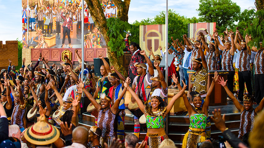 Quella stessa sera, oltre 1.000 ospiti, inclusi dignitari locali e rappresentanti tribali, hanno stipato il Grand Auditorium all’avanguardia, riversandosi anche all’aperto per assistere a uno spettacolare concerto. Alcuni dei principali talenti musicali del Sudafrica sono saliti sul palco e hanno fatto impazzire il pubblico con un’esibizione da brivido di canzoni dell’album commemorativo Africa: I Venti di Cambiamento. Il repertorio ha incluso parecchie canzoni scritte e composte da L. Ron Hubbard come tributo all’indomabile spirito dell’Africa. Spirito che si è rivelato pienamente, mentre gli artisti e il pubblico si muovevano – e si commuovevano – al ritmo e al messaggio della musica.