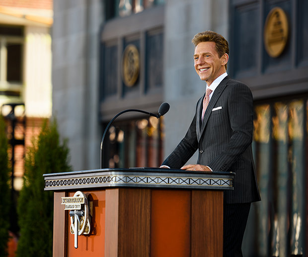 David Miscavige, leader ecclesiastico della religione di Scientology, ha tenuto la cerimonia d’inaugurazione. Nel suo discorso di apertura, David Miscavige ha sottolineato lo spirito gioviale della giornata in onore della nuova sede della Chiesa nel Midwest: “Kansas City, dove, come dicono, la gente parla l’‘americano’ più puro di tutti i 50 stati e il barbecue è il meglio che si possa trovare nella galassia gastronomica. Questa è anche una città dove l’‘etica professionale’ è ancora quella che era, prima che la parola ‘etica’ perdesse il suo significato. Quindi, Kansas City, eccoci!”.