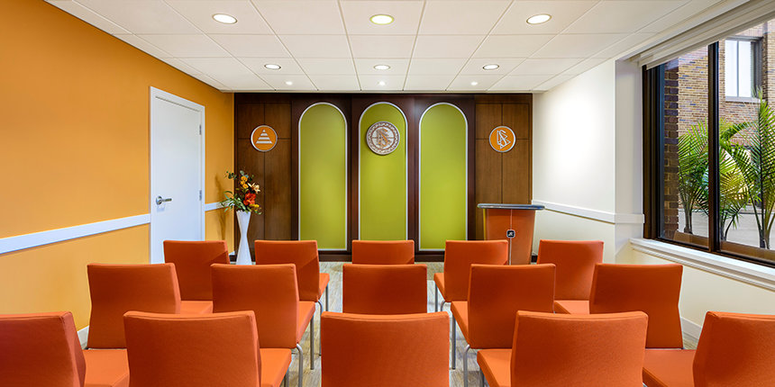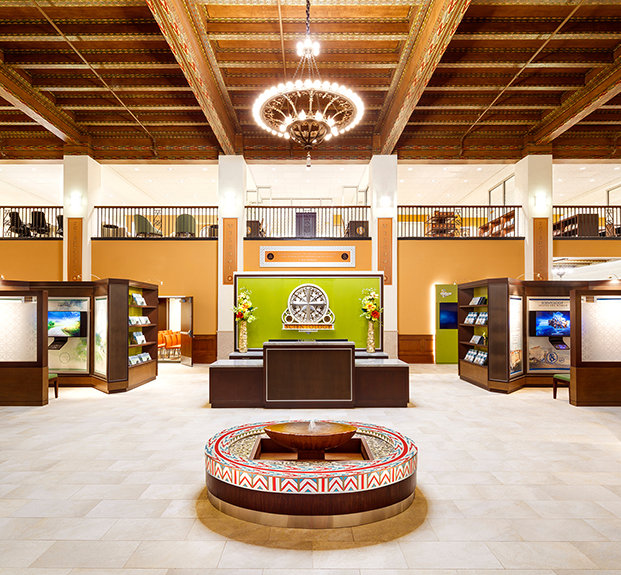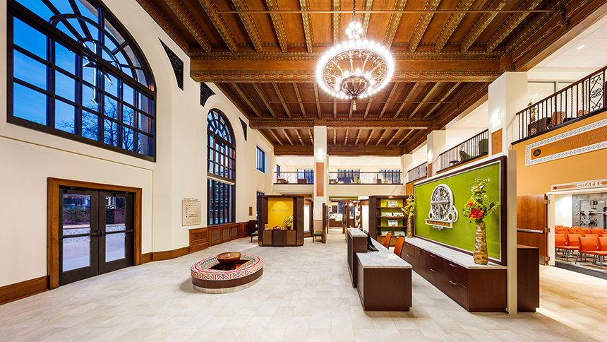L’edificio, costruito nel 1926 e monumento storico cittadino, è registrato come patrimonio di rilevanza nazionale. Il suo grandioso esterno simmetrico, che rispecchia alla perfezione il design delle Belle Arti americane, ha la tipica configurazione degli edifici degli inizi del XX secolo, che caratterizzano tuttora varie città americane. Il fiore all’occhiello è senza dubbio l’atrio del pianterreno, alto due piani e adornato con cinque esclusivi tipi di marmo, un soffitto con travi a vista, dipinto a mano con un motivo di ispirazione azteca e lampadari di imponenti proporzioni, forgiati in ottone e ferro battuto. Il tutto per uno spettacolare benvenuto in una Chiesa completamente dedita ad elevare la propria comunità.