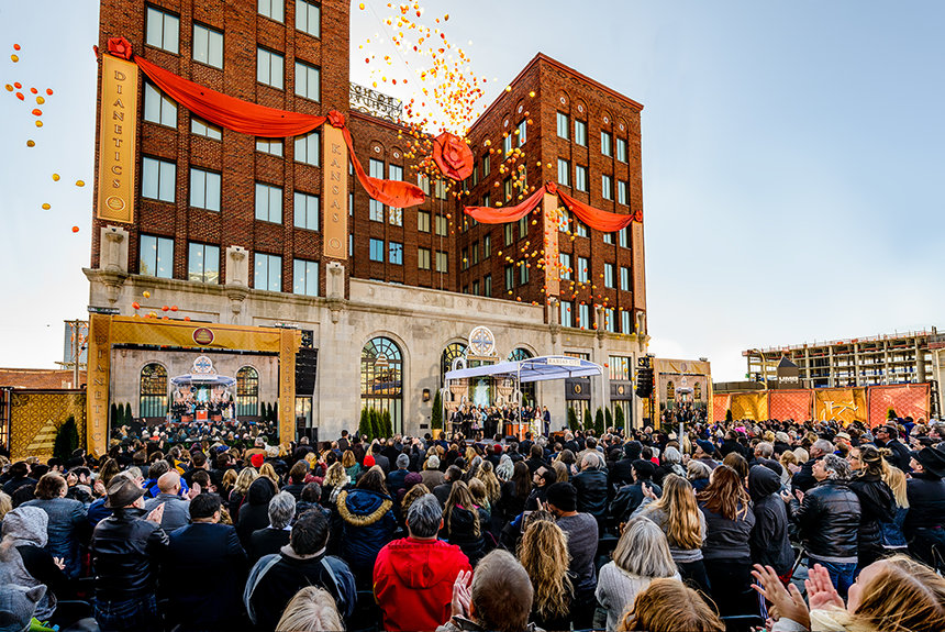 Mentre una soleggiata giornata autunnale dipingeva lo sfondo perfetto, oltre un migliaio di Scientologist si sono radunati tra la 18ª Strada e Grand per assistere all’apertura di una fantastica nuova Chiesa di Scientology che ha aperto le sue porte.
