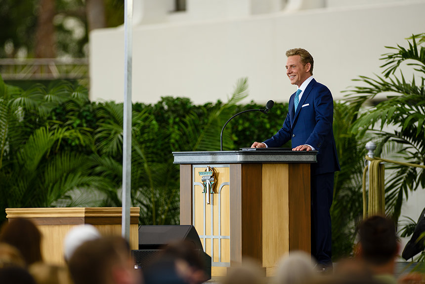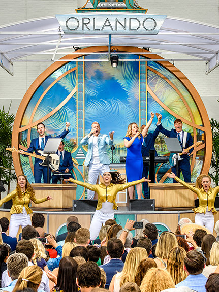 In questo pomeriggio di primavera, l’orchestra si è lanciata in un ritmo vivace: una colonna sonora di motivi tratti dal repertorio dei parchi a tema dell’area fusi con moderno hip-hop. Era un ritornello in armonia con i dignitari nei paraggi, che hanno abbracciato l’eredità della Chiesa a Orlando e spinto i fedeli a portare la “vera magia” nelle proprie comunità.