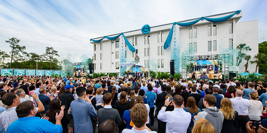 A pochi minuti dalla via dei parchi a tema di Orlando, l’International Drive, potete vedere la più recente “stella lucente”, che già sfavilla nella crescente galassia interstellare della Chiesa. L’ampia struttura occupa oltre un ettaro e mezzo ed è situata nel centro della più grande città dell’entroterra della Florida, lungo le rive del lago Ellenor. In questo luogo incantato, dove risate e immaginazione sono eterne, una folla di oltre 2.000 Scientologist e amici si è riunita sotto il sole di mezzogiorno della Florida centrale, sabato, 12 maggio, per celebrare l’inaugurazione di una nuova Chiesa di Scientology.