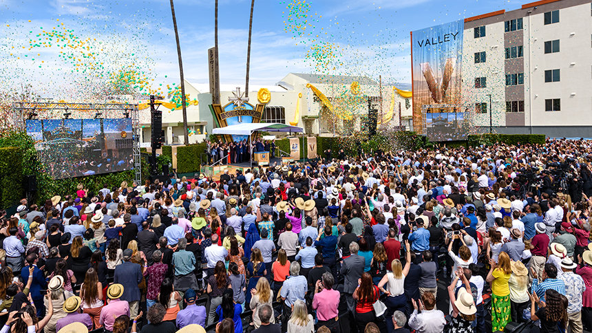 Fu così che domenica, 19 marzo all’una del pomeriggio, 5000 Scientologist si sono riuniti per assistere alla nascita della più grande Chiesa di Scientology Ideale nell’America del Nord. È stata una cerimonia degna della grandezza, portata ed essenza della nuova sede di Valley, dal medley di classiche colonne sonore che evocavano gli anni d’oro del cinema, all’inno “V per Valley” scritto e composto appositamente per l’occasione. Le migliaia di presenti si levarono in una salva di entusiastici applausi durante la gioiosa celebrazione, acclamando le autorità locali che elogiavano il grande impatto sociale della Chiesa.