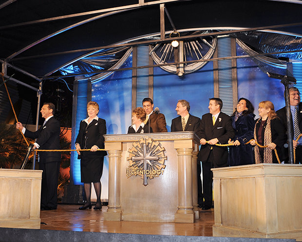 Accompagnato da Scientologist locali che hanno condotto il progetto per costruire la nuova Chiesa, il signor Miscavige ha tagliato il nastro e ha invitato tutti ad entrare.