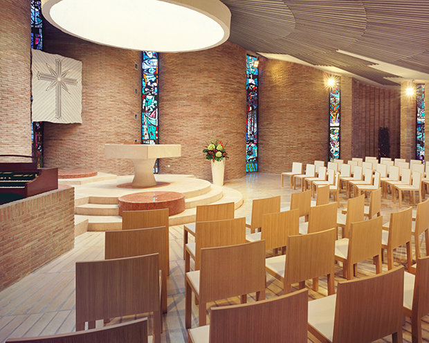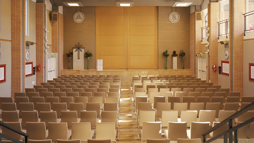 Al centro dell’edificio si trova un auditorium di 300 posti, per le manifestazioni della Chiesa e della comunità.
