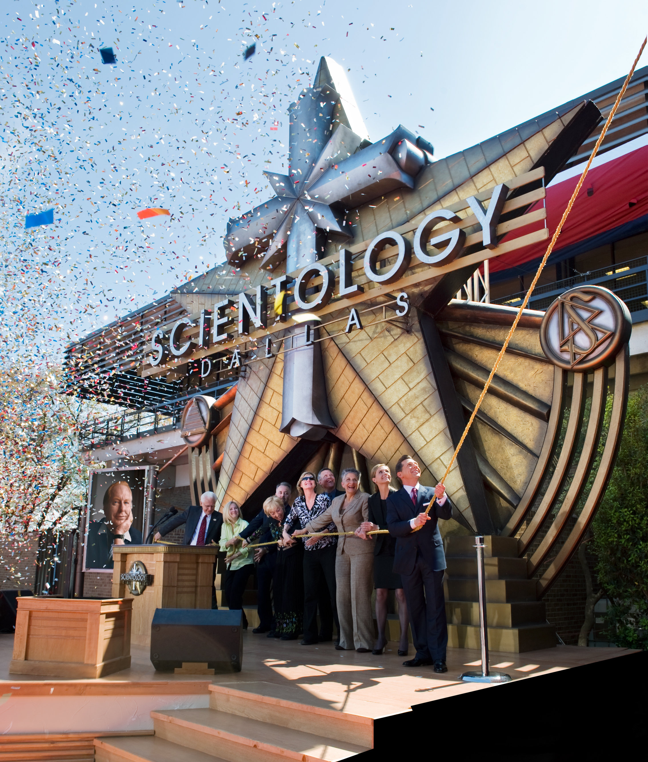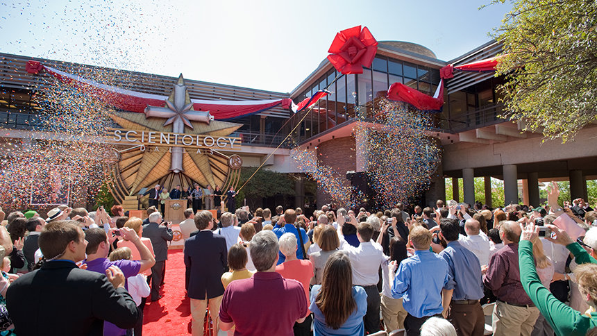 Una volta tagliato il nastro, gli Scientologist e i loro amici, vecchi e nuovi, entrarono nella nuova sede di Scientology in Texas.