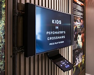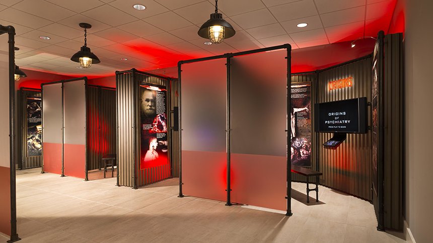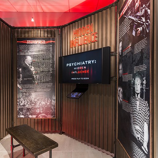 Non limitandosi affatto solo a una serie di schermi, la mostra si basa sul documentario in versione integrale che presenta l’intera storia della psichiatria, smascherando le sue origini pseudoscientifiche e le scioccanti violazioni dei diritti umani che hanno portato alla creazione del CCHR.