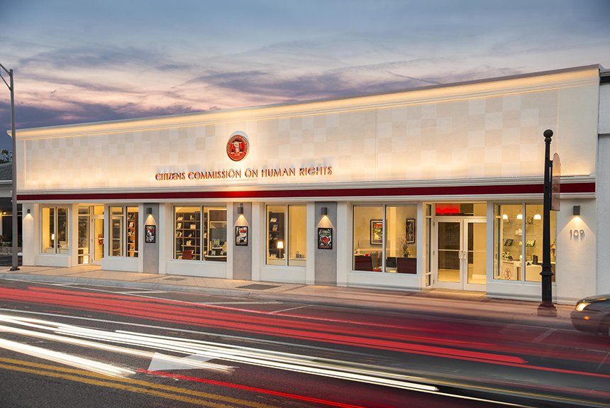 Il nuovo centro del CCHR, nei pressi dell’edificio di Scientology di Flag, nel centro di Clearwater, è un elemento fondamentale in un complesso di sei edifici dedicati a programmi patrocinati dalla Chiesa al servizio dell’area di Clearwater, un simbolo attivo di collaborazione della comunità.