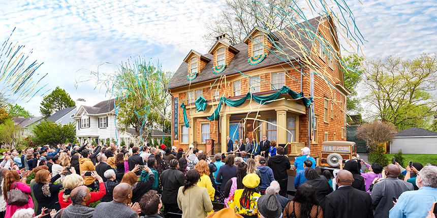Anche la storia trasformativa del libro era descritta con una splendida presentazione visiva della cerimonia di inaugurazione di un nuovo storico Patrimonio Rappresentativo di LRH: la primissima Fondazione di Dianetics. Inaugurata il mese scorso al numero 42 di Aberdeen Road, a Elizabeth, nel New Jersey, i dignitari si sono uniti agli Scientologist e ai vicini che hanno assistito al retaggio del Libro Uno ritornato in vita.