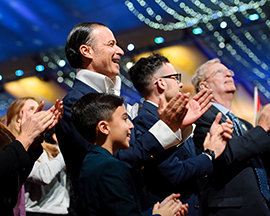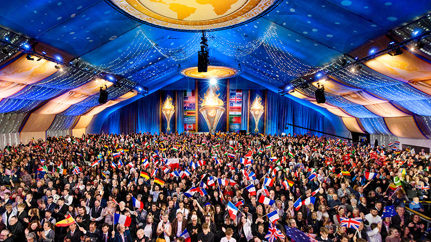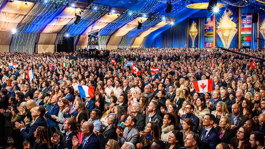 Radunatasi da tutto il Regno Unito, dall’Europa, dagli USA e persino dall’Africa e dall’Asia, la folla, impaziente, ha sfilato sul tappeto rosso per entrare nello splendido Gran Padiglione. Quando il palco si è illuminato in un’esplosione di luci, per segnalare l’inizio dell’event di apertura, David Miscavige, Presidente del Consiglio di Amministrazione del Religious Technology Center, ha fatto il suo ingresso accolto da una fragorosa standing ovation di storica durata.