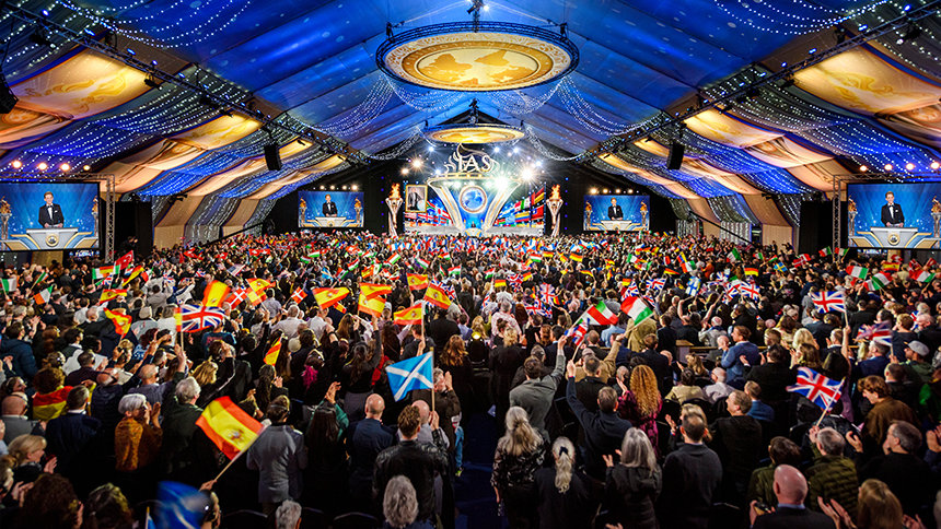 Sabato sera, il Gran Padiglione si è acceso di vita diventando il punto d’incontro per l’annuale Ballo dei Patron della IAS. La serata di gala ha dato riconoscimento a membri della IAS provenienti da 59 paesi per la loro costante dedizione nel portare avanti il movimento umanitario della IAS. L’evento ha assunto un significato ancora maggiore considerando che, nei quattro anni successivi all’ultimo Ballo dei Patron a Saint Hill, poco meno di 5.000 Scientologist sono diventati Patron della IAS, un primato nella storia.