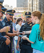 VINCERE ALLA GRANDE ALLA GRANDE PARTITA Il più grande evento dell’anno della durata di un giorno è stata l’annuale iniziativa di distribuzione in occasione del Super Bowl a New Orleans. Più di 120 volontari di Mondo Libero dalla Droga hanno attraversato il Quartiere Francese, raggiungendo infine i fan con 360.000 opuscoli La Verità sulla Droga.