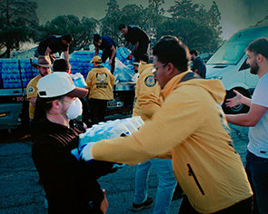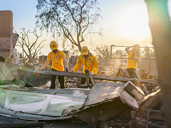 La più grande forza di VM mai vista su suolo americano, circa 2.500 Ministri Volontari che rispondono agli epocali incendi a Los Angeles. Le fiamme hanno infuriato per giorni, dalla costa del Pacifico fino alle montagne, incendiando un’area pari al doppio della superficie di Parigi e causando evacuazioni su vasta scala. I VM hanno aiutato poco meno di 10.000 abitanti di Los Angeles in un solo giorno – più di 100.000 in totale – fornendo supporto logistico, sostentamento e aiuto spirituale ai primi soccorritori e rispondendo alla chiamata di oltre 70 enti di risposta alle emergenze.