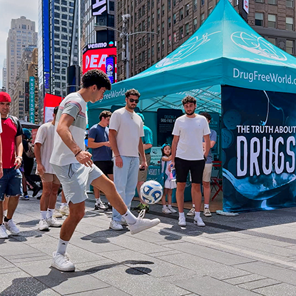 INIZIATIVA GLOBALE PER MONDO LIBERO DALLA DROGA Il più ampio programma di educazione antidroga non governativo al mondo, Mondo Libero dalla Droga, ha portato La Verità sulla Droga a 2.700 eventi in quasi 400 città e paesi nello scorso anno, dalle fiere di quartiere ai mega eventi sportivi come la Coppa del Mondo per Club FIFA.