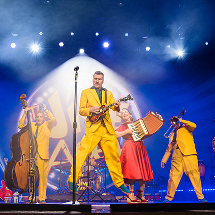 Un’altra straordinaria esibizione illumina l’evento di beneficenza, con i Jive Aces del Regno Unito insieme a una serie di artisti di livello mondiale che eseguono brani di Broadway, di Hollywood, oltre a classici senza tempo.