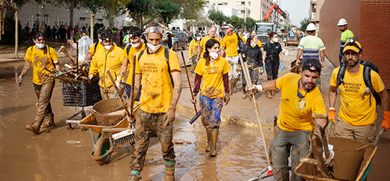 I MINISTRI VOLONTARI INTERVENGONO IN QUALUNQUE LUOGO, IN QUALSIASI MOMENTO Quest’anno i VM hanno risposto alla chiamata in seguito a oltre una dozzina di disastri naturali, tra cui una tempesta tropicale in Venezuela, piogge torrenziali in Texas, inondazioni catastrofiche in Spagna, piogge incessanti in Kenya e un devastante terremoto di magnitudo 7,1 in Nepal.