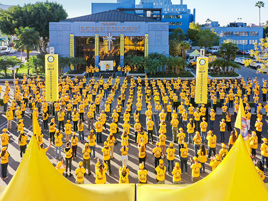 David Miscavige accende i riflettori sulle famose Magliette Gialle: i Ministri Volontari di Scientology, riconosciuti in tutto il mondo per portare aiuto indiscriminato.