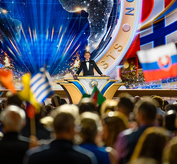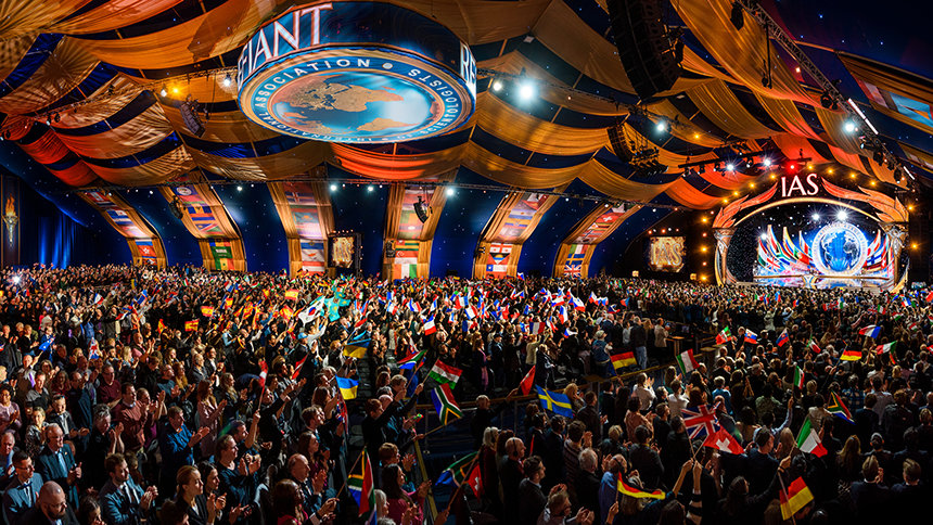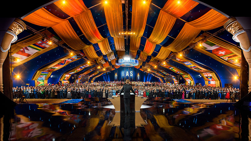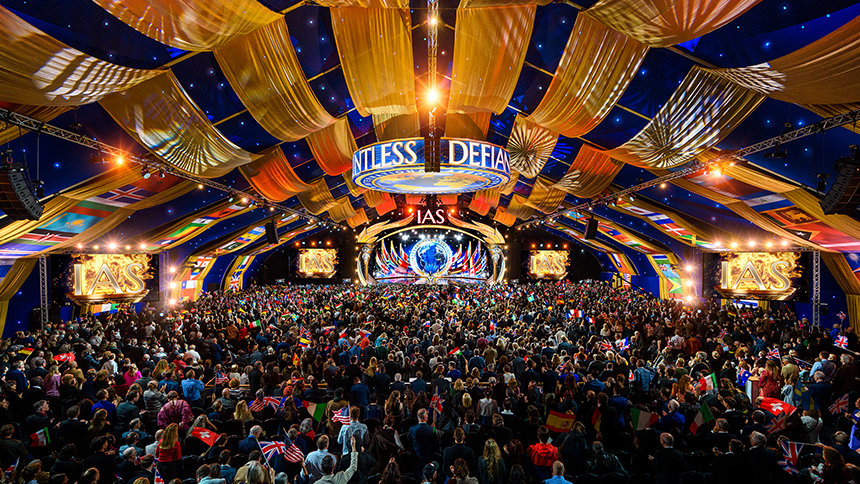 Eleganza e splendore fanno da cornice alla celebrazione mentre i membri della IAS convergono da sei continenti verso Saint Hill, la storica casa del Fondatore di Scientology L. Ron Hubbard nel West Sussex. Avanzando lungo il tappeto rosso, la folla entra nel Gran Padiglione in gioiosa aspettativa, le bandiere di tutto il mondo sventolano alte, i cuori sono accesi mentre tutti gli occhi si volgono verso il palco.