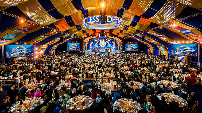 Poi, sabato sera, il Gran Padiglione si trasforma in una elegante sala da ballo per l’annuale Ballo dei Patron della IAS. David Miscavige dà inizio alla serata con queste parole: “Sì, questo è l’epicentro del nostro universo IAS, il luogo di nascita di un retaggio che ha cambiato per sempre il corso del nostro movimento”.
