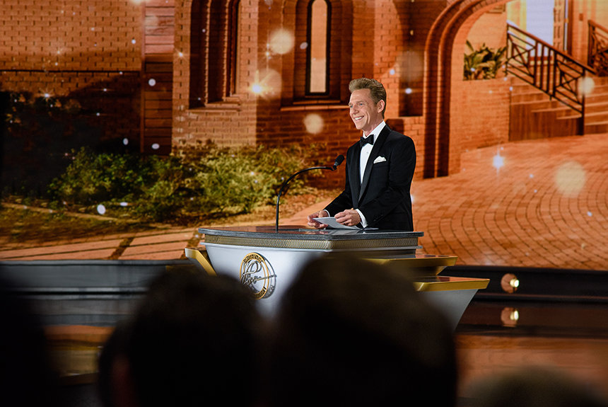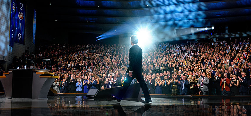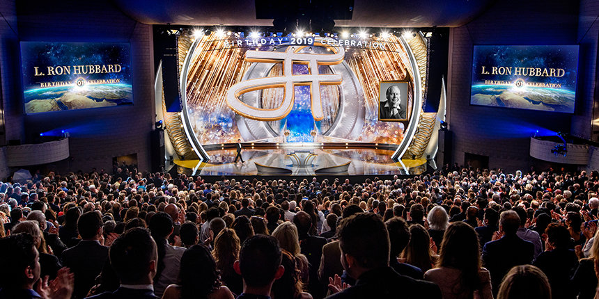 Tutto il clamore e l’entusiasmo hanno preparato il terreno per il massimo riconoscimento della serata al retaggio di L. Ron Hubbard. “E questo ci porta al capitolo culminante di questo Gioco del Compleanno 2019,” disse il Sig. Miscavige. “Quindi, sebbene ne abbiate sicuramente sentito parlare, e l’abbiate forse persino visto, è arrivato il momento di stabilire i fatti.”