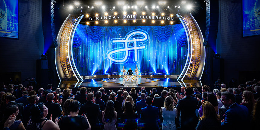 La serata ha poi proseguito nel 2019, con una cerimonia di premiazione che ha sottolineato lo spirito della serata: celebrare l’espansione. Una quarantina di anni fa, a LRH fu chiesto cosa volesse per il suo compleanno. La sua risposta fu il dono di org e missioni di Scientology fiorenti in nome della libertà spirituale. Nel corso degli anni, le Chiese di Scientology di tutto il mondo ne hanno fatto un gioco, competendo in una delle quattro leghe e correndo verso il traguardo. Quest’anno i campioni saliti sul podio dei vincenti hanno raggiunto risultati superiori a ogni record. Sono: la Missione di Scientology di Ulm in Germania, la Chiesa di Scientology di Stoccarda, sempre in Germania, l’Organizzazione Avanzata e Saint Hill del Regno Unito e l’Ufficio di Collegamento Continentale d’Europa.
