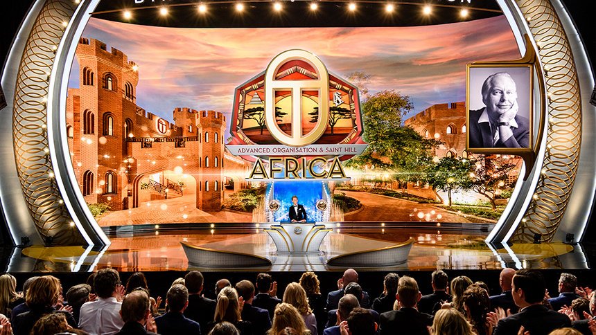 Così, il Sig. Miscavige ha poi presentato il coronamento dei conseguimenti d’espansione di quest’anno, l’apertura della prima Organizzazione Avanzata in oltre 35 anni. La storica inaugurazione di un maestoso castello con vista su 9 ettari di prateria, ha reso i livelli spirituali avanzati di Scientology disponibili per la prima volta sul suolo africano e quindi è stata la realizzazione di un sogno espresso per la prima volta da Ron Hubbard più di 50 anni fa. La presentazione ha descritto una serie di memorabili celebrazioni, dalla magnifica cerimonia d’inaugurazione che dignitari nazionali hanno acclamato come “il risveglio della nostra amata Africa”, al monumentale raduno di capi tribali. Nel giro di pochi giorni dall’inaugurazione, il castello ha ospitato un “Summit dei Troni”, con la partecipazione di 14 capi tribali provenienti da cinque nazioni africane. L’ospite d’onore, la regina Shebah III, Imperatrice dei Regni Africani, ha dato riconoscimento a L. Ron Hubbard per aver “trovato i mezzi per unire tutti i regni e i popoli di questa culla dell’Africa”.