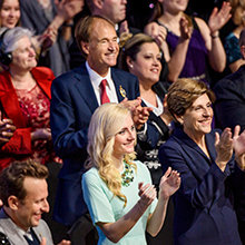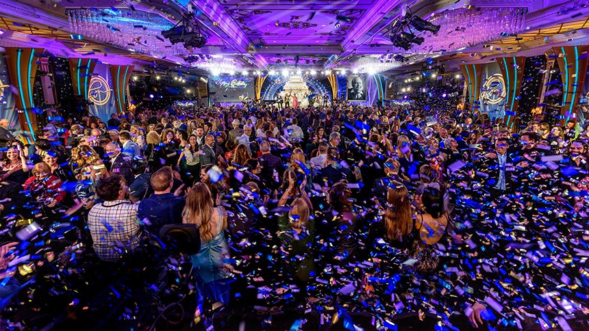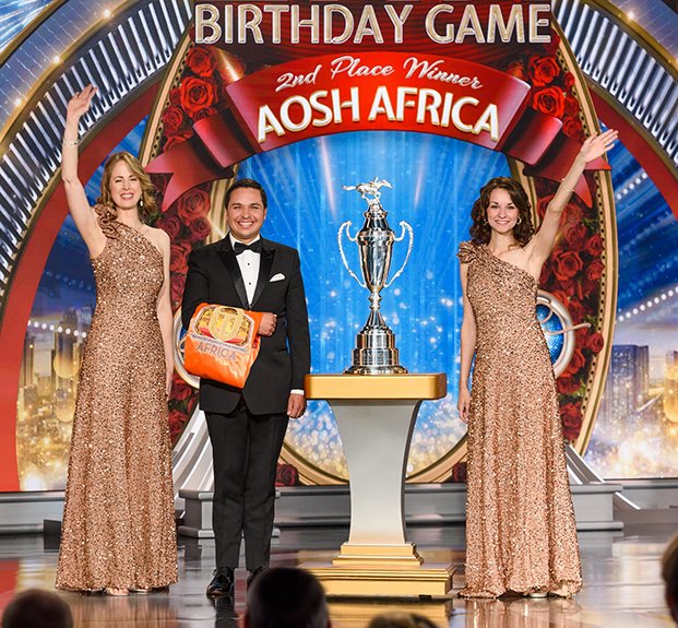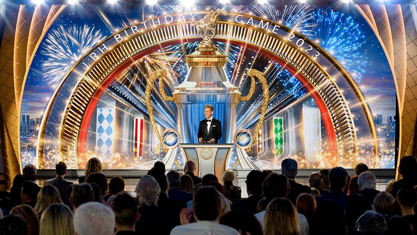 Successivamente è arrivato il momento di annunciare i campioni del Gioco del Compleanno di LRH. Il palco si è trasformato in un podio dei vincitori, con tanto di luci sfavillanti, casacche da fantino e luccicanti trofei. Il Gioco del Compleanno porta avanti la tradizione di onorare L. Ron Hubbard con il dono dell’espansione in ogni Chiesa di Scientology.