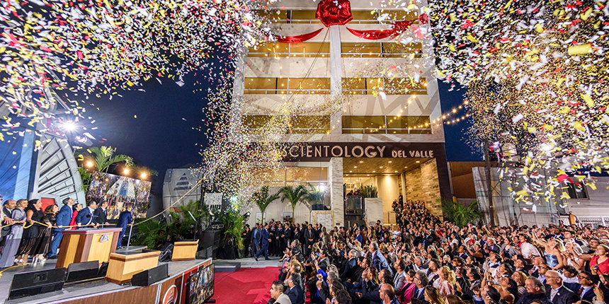 Appena sei giorni più tardi, David Miscavige ha viaggiato per 1.600 km verso sud fino a Città del Messico, la più grande città di lingua spagnola sulla Terra, dove i mariachi deliziavano con le loro melodie la folla riunita. Sotto un cielo notturno, David Miscavige ha celebrato l’Inaugurazione dell’Org Ideale di Del Valle. L’edificio di 12 piani, con la sua insegna di Scientology illuminata alta 24 metri, domina la città ed è visibile da un miglio in ogni direzione.