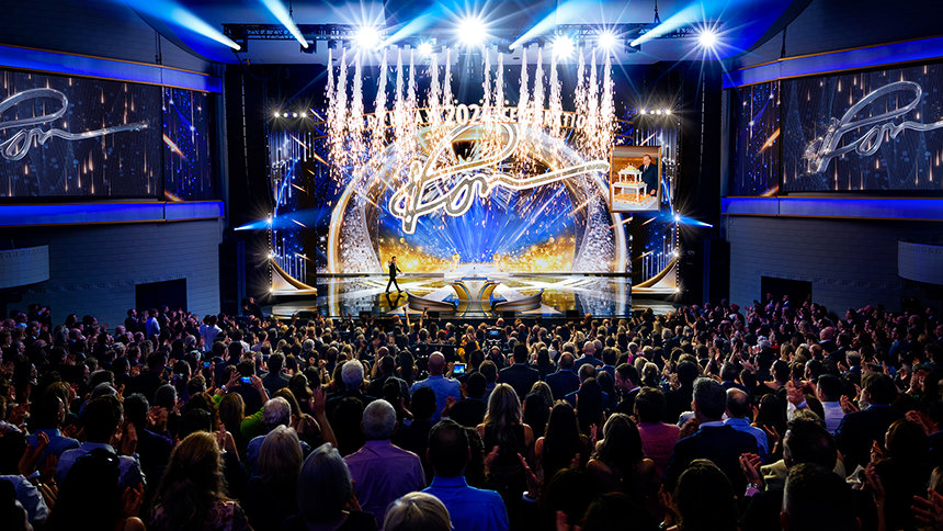 Dopo 30 minuti colmi di una frizzante energia generata dalla performance di una band superlativa – a cui si sono uniti solisti, ballerini e persino il bassista Stanley Clarke, vincitore di Grammy Award – i fuochi artificiali e la prima delle innumerevoli standing ovation hanno salutato David Miscavige, Presidente del Consiglio di Amministrazione del Religious Technology Center, mentre saliva sul palco per celebrare il compleanno di L. Ron Hubbard (LRH).
