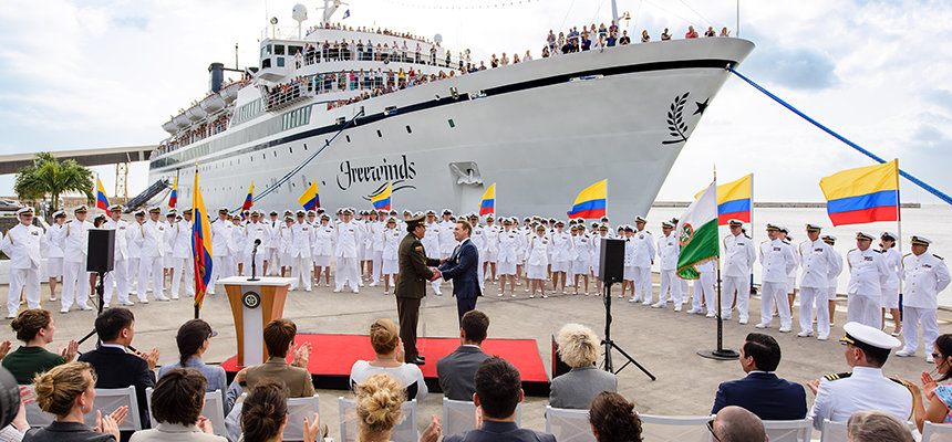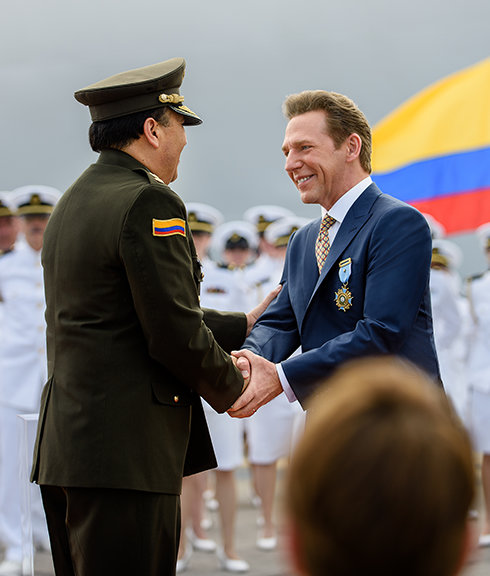 La settimana è stata coronata da un premio che ha interamente a che vedere con la Freewinds ma è monumentale di per sé. Infatti, sulla scia di una campagna di sensibilizzazione guidata dalla Freewinds che ha portato alla distribuzione di milioni di copie di La Via della Felicità, La Verità sulla Droga e La Storia dei Diritti Umani in tutta la Colombia, e in seguito all’inaugurazione di una Chiesa nazionale di Scientology a Bogotà, in Colombia, le violazioni dei diritti nel paese sono diminuite del 96% e si è concluso un memorabile trattato di pace tra le truppe delle FARC e il governo nazionale che ha posto fine a 50 anni di guerra civile. Quindi, la Polizia Nazionale Colombiana ha ricambiato, con una medaglia di altissimo onore al leader ecclesiastico della religione di Scientology, David Miscavige, per “l’impegno nel salvare l’umanità dalla violenza, dal male, dal terrorismo, dalle droghe e da tutti i fattori negativi che la minacciano”.