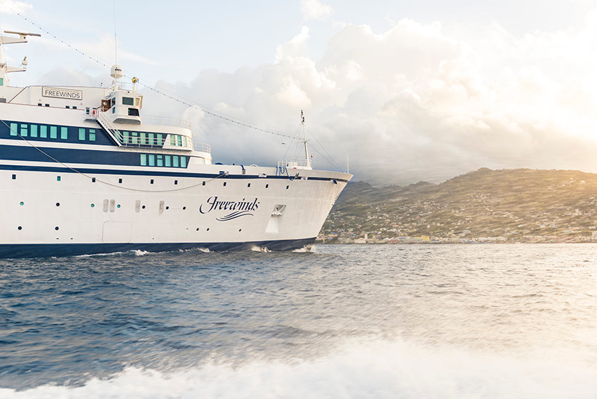 I Caraibi evocano immediatamente immagini di imponenti navi da crociera che scivolano dolcemente da un porto all’altro mentre i passeggeri si godono le isole tropicali, i meravigliosi paesaggi e le dolci note del calypso. Ma, anche se la Freewinds condivide certamente con le altre navi di lusso molte caratteristiche – tra cui, la cucina a cinque stelle, le cabine splendidamente arredate, l’eleganza classica delle navi da crociera, e passeggeri che si godono innegabilmente la vacanza nelle Indie Occidentali – qualsiasi altro confronto si ferma lì.