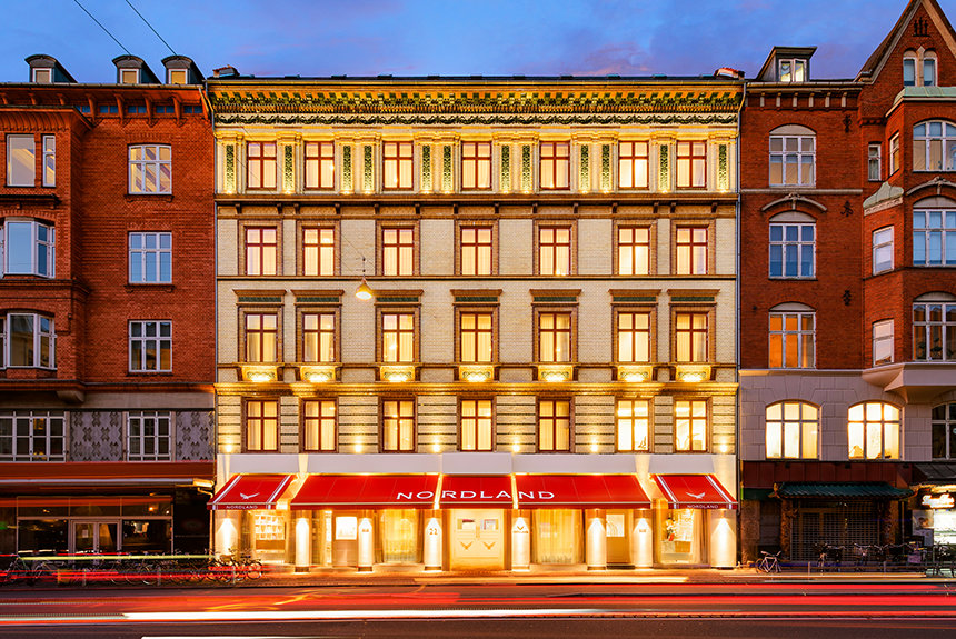 Il Nordland occupa uno storico edificio neoclassico a pochi minuti dagli emblematici Giardini di Tivoli di Copenaghen, il secondo tra i parchi divertimenti più antichi al mondo. Lo stile dell’edificio, originariamente costruito nel 1889, è stato interamente preservato dalla Chiesa, incluso il tetto in ardesia e la facciata in mattoni e terracotta. Anche il cortile dell’edificio in mattoni, tipico di Copenaghen, è stato riportato alla sua condizione originale.